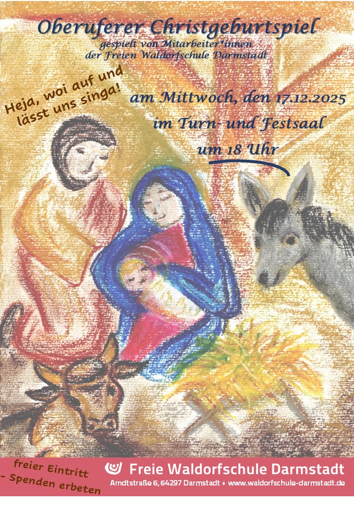 Wir laden herzlich ein zum Oberuferer Christgeburtspiel, gespielt von Mitarbeiter und Mitarbeiterinnen der Freien Waldorfschule Darmstadt.
